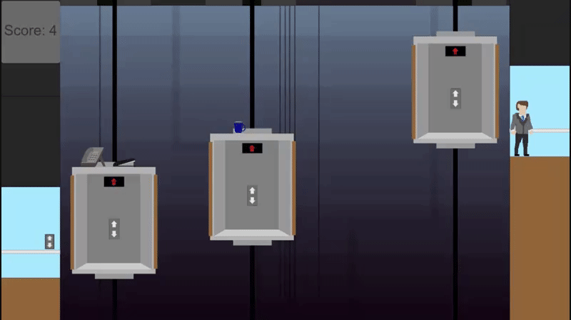 Players must race across broken and deteriorating elevators to obtain an interview at Elevator Corp. The elevators within the game are heavy and shake with the players constant movement creating a challenging environment.
