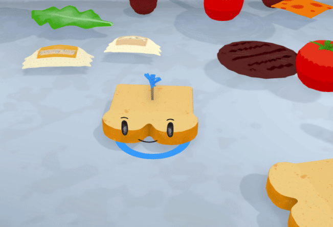Simple Sandwich is a 3D, top down "couch competitive" romp in which up to 4 players take control fo a slice of bread with small arms and legs and compete to make the most and BEST sandwiches as possible before the time runs out! AI creeps that wander around make up sandwich ingredients (slice of lettuce, tomato, burger, ect). When close to an ingredient creep, players can absorb them to add to their sandwich by jumping onto them. After stacking several ingredients, players jump onto bread creeps and move to the dinner plate to complete the sandwich and earn points.